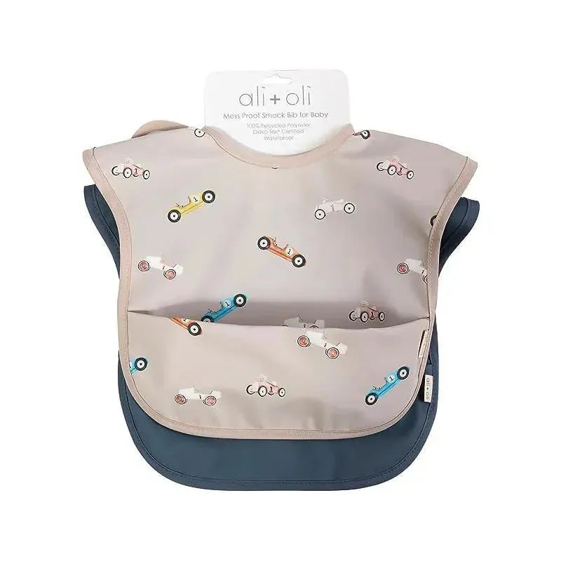 Ali + Oli - 2Pk Smock Bib For Baby Short Sleeve, Cars Midnight
