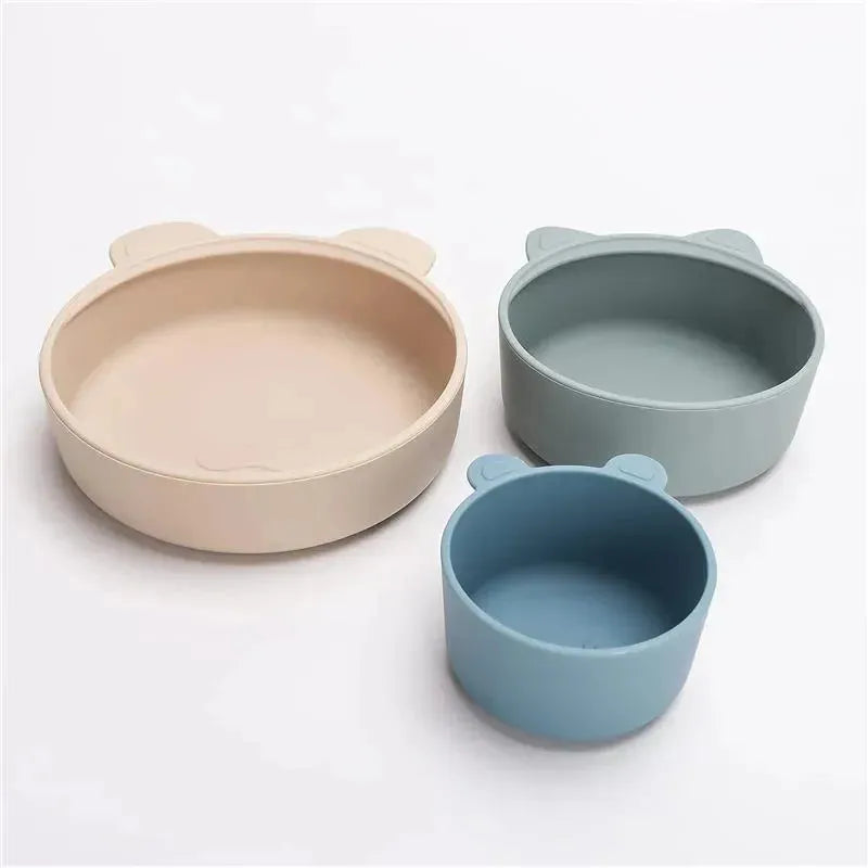 Ali+Oli Silicone (3-pc) stackable snack bowls for kids are an ideal companion when it comes to your baby's led weaning supplies. Our set includes three adorable snack bowlss with baby feeding designs; Bear, Panda, and Cat. The toddler snack bowls are stackable! Children's plates and bowls are an essential part of parenting. Our kids dinnerware snack bowls are soft, pliable, and suitable for your baby's use. Add these to your baby dishes and utensil sets for toddlers and watch your little one enjoy mealtime. Our plates are 100% food grade silicone, no fillers or harmful materials that could leach into your child’s food! Ultra-durable and unbreakable silicone is the ideal material for toddler dishes Clean before first use, clean & rinse thoroughly after each meal. Our baby feeding set can be used in the microwave and dishwasher.