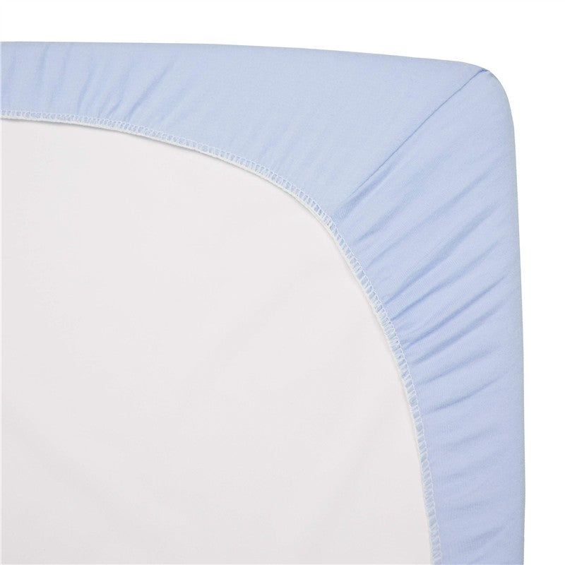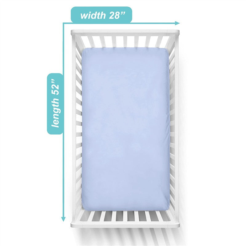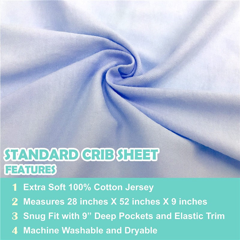 Our 100% Cotton value jersey knit fitted Crib sheet is now available in 6 soft colors to coordinate with baby's nursery. Fits standard 28" x 52" crib mattresses; 9" deep corner pockets with elastic all around provide a snug and secure fit for baby's comfort. Machine wash cold with gentle cycle , tumble dry low for best results.