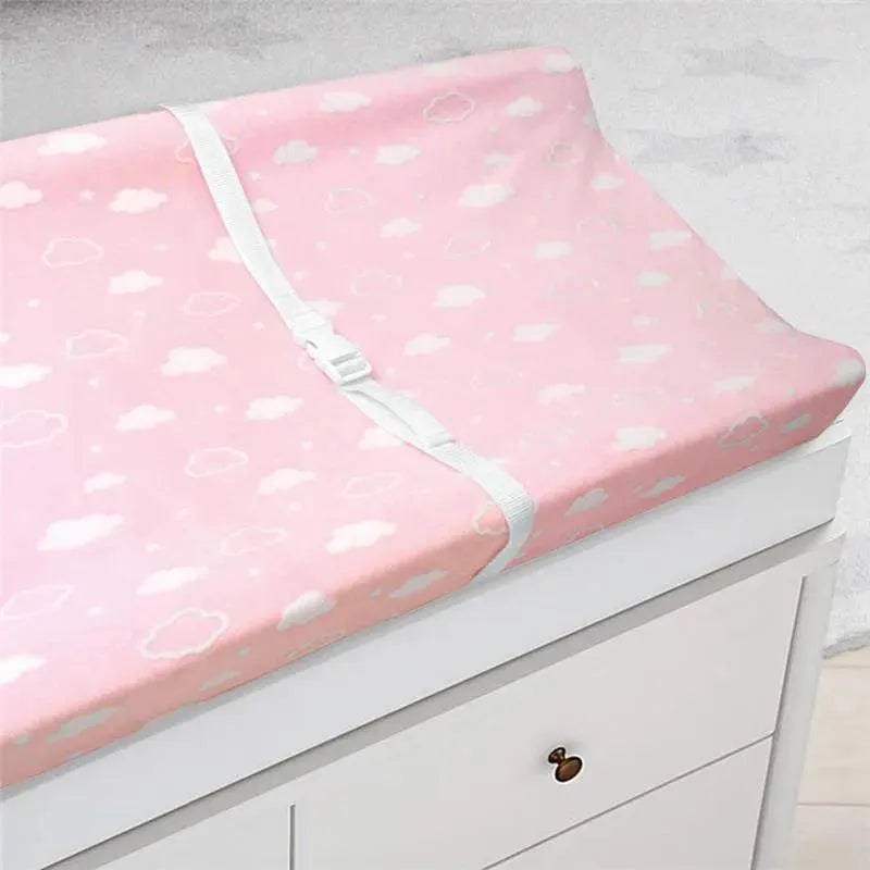 Our heavenly soft changing table cover is made of an ultra soft and elegant velour material, and fits all standard size 17w x 35 L x 5h contoured changing table Pad.