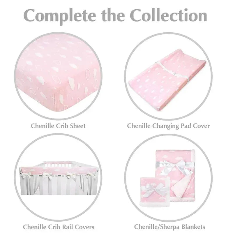 American Baby - Heavenly Soft Chenille Contoured Changing Pad Cover 17 X 35 X 5, Pink Clouds