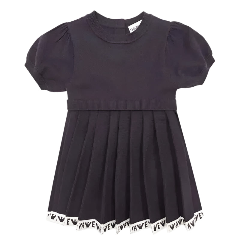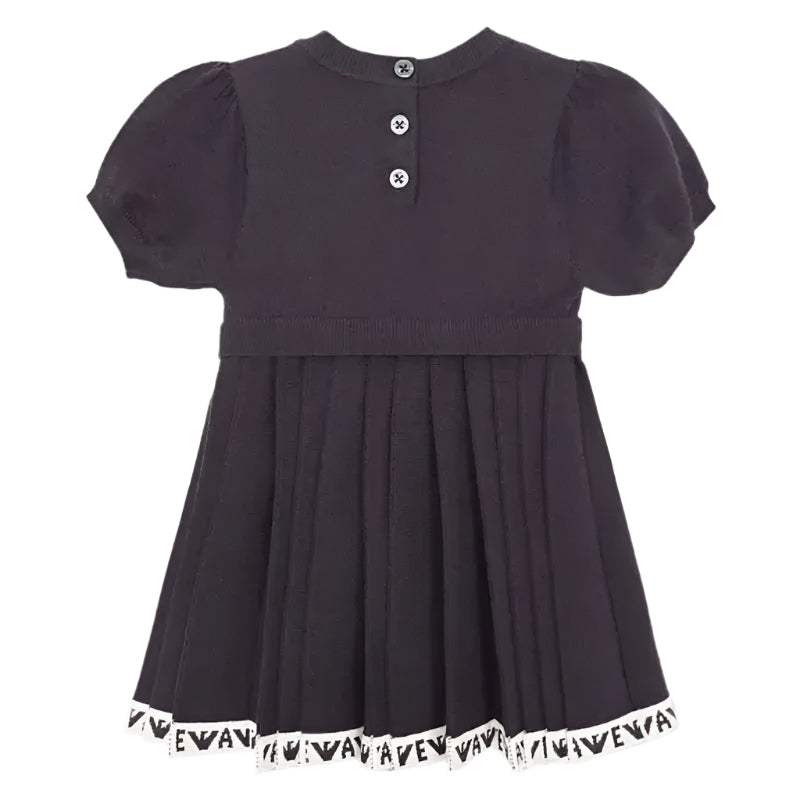 Armani Baby - Girl Short Sleeve Pleated Dress Logo, Navy