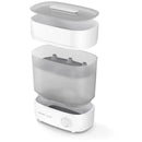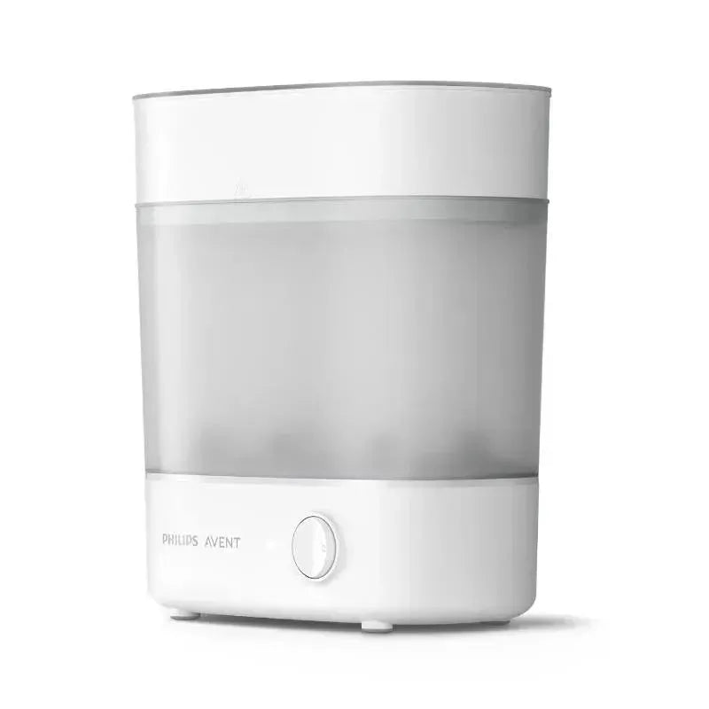 The Philips Avent Advanced Electric Steam Sterilizer effectively kills 99.9% of germs in just 6 minutes*. It sterilizes using steam, an effective, chemical-free way to protect your baby from harmful germs. The Advanced Electric Steam Sterilizer is adjustable, giving you the option of a small configuration for pacifiers, a medium configuration for breast pumps, toddler plates and utensils, and a large configuration for up to 6 Philip Avent bottles; and it requires minimal counter top space. To use, just add water to the base, load, and turn on the power. Advanced features, such as a 6-minute cycle with automatic shutoff and drip tray to prevent unpleasant odors, make it easy to use; and contents remain sterile for up to 24 hours if the lid remains closed. The Philips Avent Advanced Electric Steam Sterilizer is backed by a full 2-year warranty. *With heating time of 4 minutes, total sterilization cycle is 10 minutes.