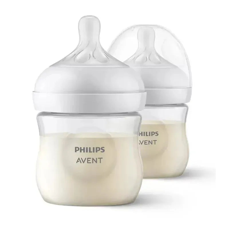 Philips Avent Natural bottle with the Natural Response nipple lets baby control the pace of the milk, like they do when breastfeeding. The nipples' unique opening and tip only releases milk when your baby actively drinks. When pausing to swallow and breathe no milk flows. Baby can drink, swallow, and breathe using their natural rhythm, just like they do when breastfeeding. Easily combine breast and bottle feeding with a wide breast-shaped nipple with a soft feel that mimics the shape and feel of a breast; plus baby controlling the flow of milk like they do when breastfeeding. The nipple has a no-drip design which helps prevent lost milk from the tip. An anti-colic valve integrated into the nipple is designed to reduce colic and discomfort by sending air away from your baby's tummy. The ergonomic shape makes it comfortable for parents to hold and easy for small fingers to grasp. Assembly is simple with only a few parts and the wide bottle neck makes filling and cleaning easy. The Natural bottle is made from polypropylene, a BPA free material, and works with all nipples and caps from the Natural line. The Natural response nipples come in flow rates 1-5, to keep up with your baby's growth. Includes: 3 4oz Blue Natural bottles with Natural Response nipples, flow 2.