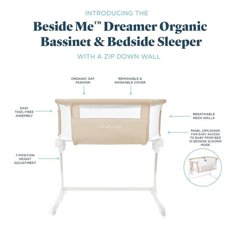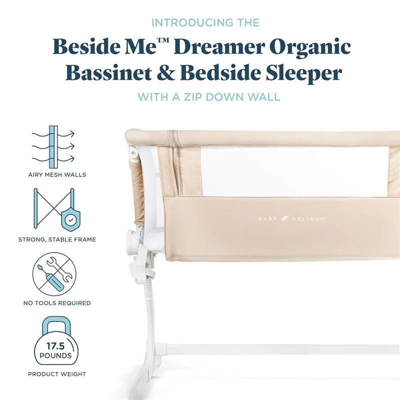 Baby Delight - Beside Me Dreamer Bassinet, 6-Position Height Adjustment, Organic Oat