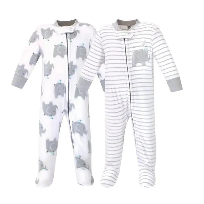 Baby Vision - Hudson Baby Unisex 2Pk Fleece Zipper Sleep & Play, Elephants