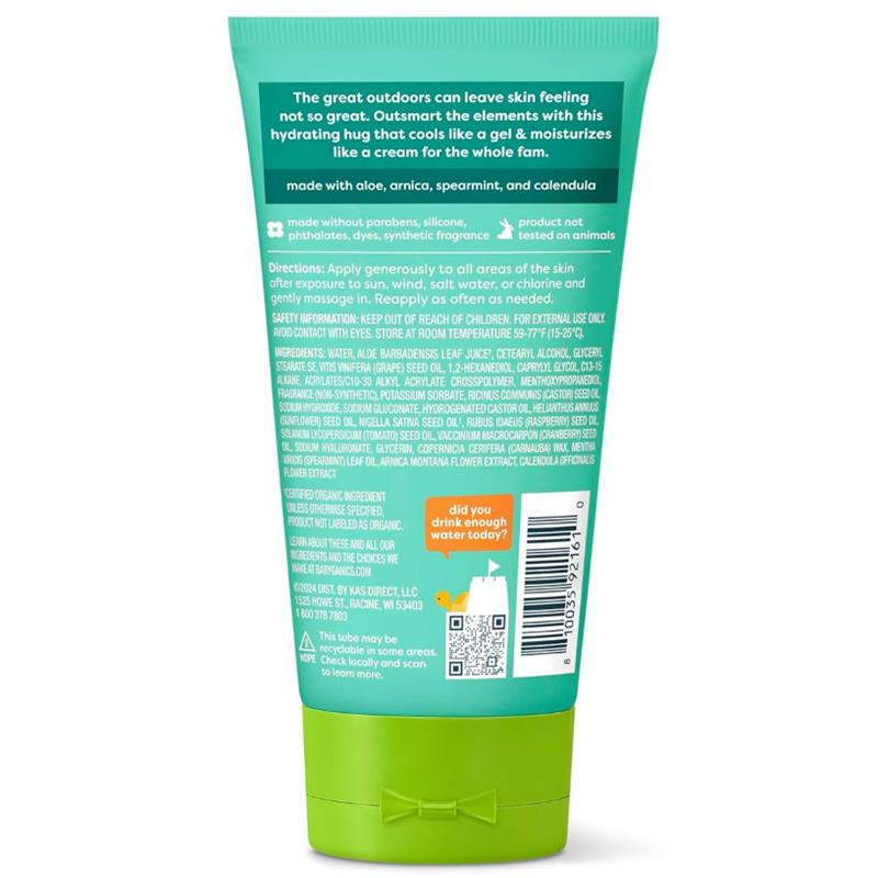 Our After Sun Gel Cream protects and hydrates skin for every pre-and-post sunny activity. Because keeping baby’s skin baby soft is serious business. Perfect for sunny days, windy days, and any other kind of day. Cools, hydrates, and nourishes. Our innovative formula cools like a gel and moisturizes like a cream. Made for everyone in the fam—from baby and kids to parents.