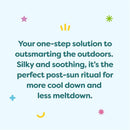 Cools, moisturizes, and hydrates skin after a day of fun in the sun, salt, or sand