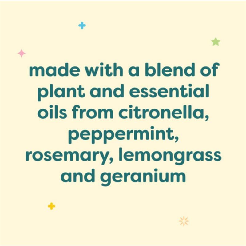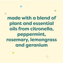 Made with plant & essential oils of citronella, peppermint, rosemary, lemongrass and geranium