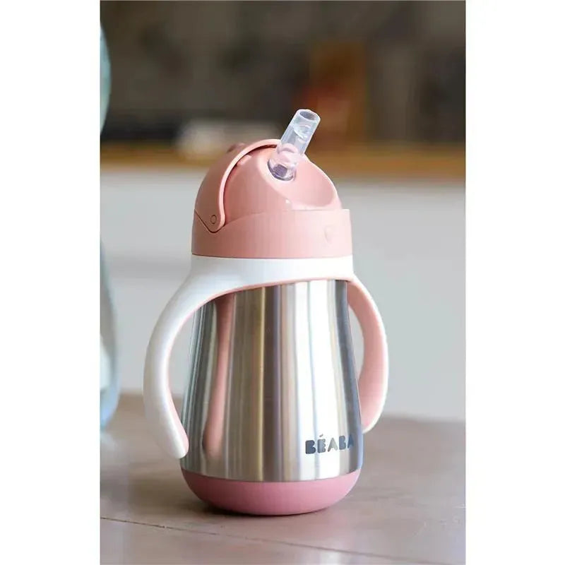 The Stainless Steel Straw Sippy Cup from Beaba helps reinforce the transition of children 8 months and up to learn to drink on their own. Features double-wall insulation to keep liquids cold or hot longer plus a comfortable-to-the-touch exterior.Thoughtfully designed to help reinforce the transition of children to drink with a cup on their own