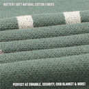 Our 36" x 32" cotton blanket is more than just a blanket - it's an all-season essential. Perfectly sized for newborns, infants, and toddlers aged 0-2 years, it's a versatile companion for wrapping, swaddling, or cuddling. It slips easily into strollers, car seats, cribs, and bassinets, providing a snug embrace in winter and a cool relief in summer.