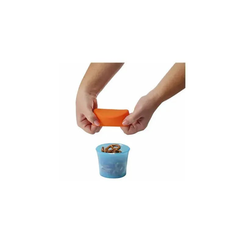 Snacks just might be the best invention ever—until an exuberant toddler flings a humongous container of them skyward. But thanks to Snug Snack it will never rain goldfish again. These handy dandy silicone lids turn cups into spill-proof snack fortresses. Snug Snack comes with two stackable containers and fit cups with a 3.25–4 inch diameter. More munch, less mess.