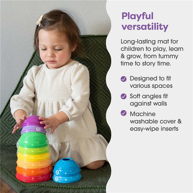 Crafted with a sturdy foam base that provides just the right balance of firmness and spring, this play mat is a haven of comfort and support for your child's playtime. Tummy time or story time, your child will love spending time on this mat.