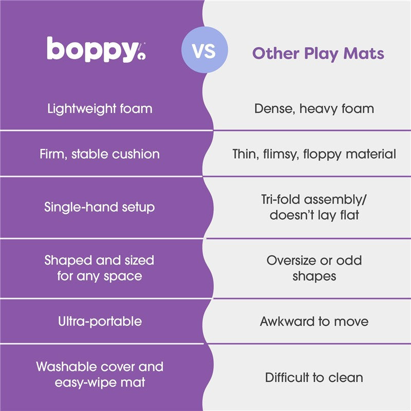 Featuring a removable, machine-washable poly-cotton cover and a wipeable foam insert, dealing with any messes is a walk in the park. The Boppy Play Mat is designed to last, promising hassle-free cleanups and long-lasting durability.