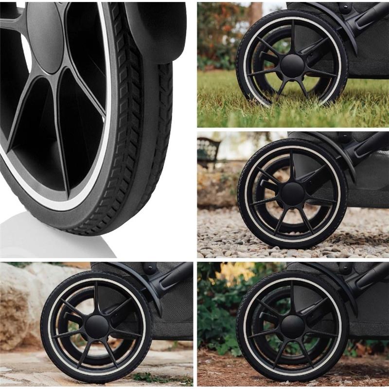 Crafted with premium materials and elegant leatherette accents, the Tura Stroller is as stylish as it is functional. Its slim frame and swiveling front wheels make navigating crowded sidewalks and tight corners effortless, while central suspension and puncture-free all-terrain tires ensure a smooth ride on both city streets and park trails.