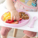 Serve up mealtime magic with this adorable Disney dish set. The Bumkins Silicone Plate and Spoon Set is perfect for little ones learning to self-feed! The spoon features the iconic shape of Mickey Mouse’s ears. It’s the ideal size for babies to begin the motions of self-feeding while under the supervision of a caregiver. Made from 100-percent food-safe platinum silicone, the chewable spoon is gentle on gums. Silicone can withstand low and high temperatures, easily transitioning from the refrigerator or freezer to the oven or microwave to warm.