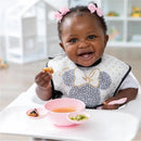 Made with 100-percent food-safe platinum LFGB silicone. Microwave, freezer and dishwasher-safe. Bowl is oven safe up to 400F/204C. For ages 4 mos and up. We use third party labs to ensure the products we manufacture comply with CPSC and CPSIA standards for BPA, Lead, and Phthalates. For over 30 years, Bumkins has been creating thoughtful essentials for babies and kids, making parenting easier so families can cherish special moments. Designed in Arizona, responsibly made in China.