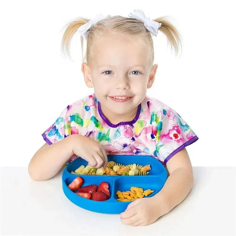 Encourage your child to sel feeding with this adorable divided plate, perfect for right food portions. It features a strong suction base to ensure it will stay put and avoid messes, a natural resistance to bacteria and a straight side that allows kids to belly up the plate when on high chairs.