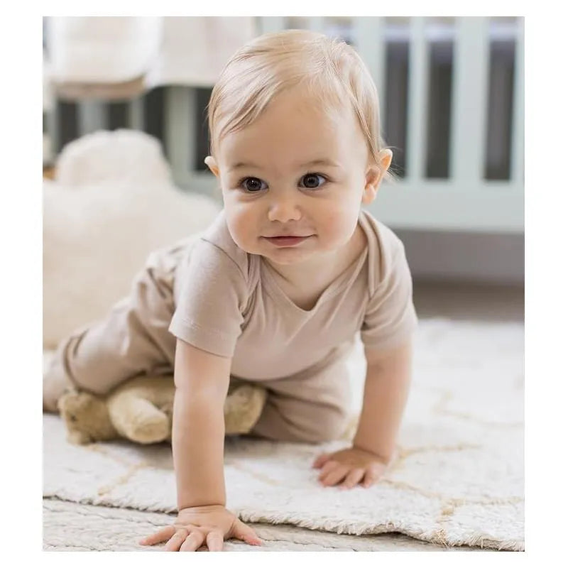 Lap Shoulder Design: Our baby bodysuits feature a lap shoulder style, making dressing and undressing easy. Say goodbye to tiny sleeves and hello to effortlessly sliding them on. The reinforced snaps ensure comfort and strength amidst baby activities.