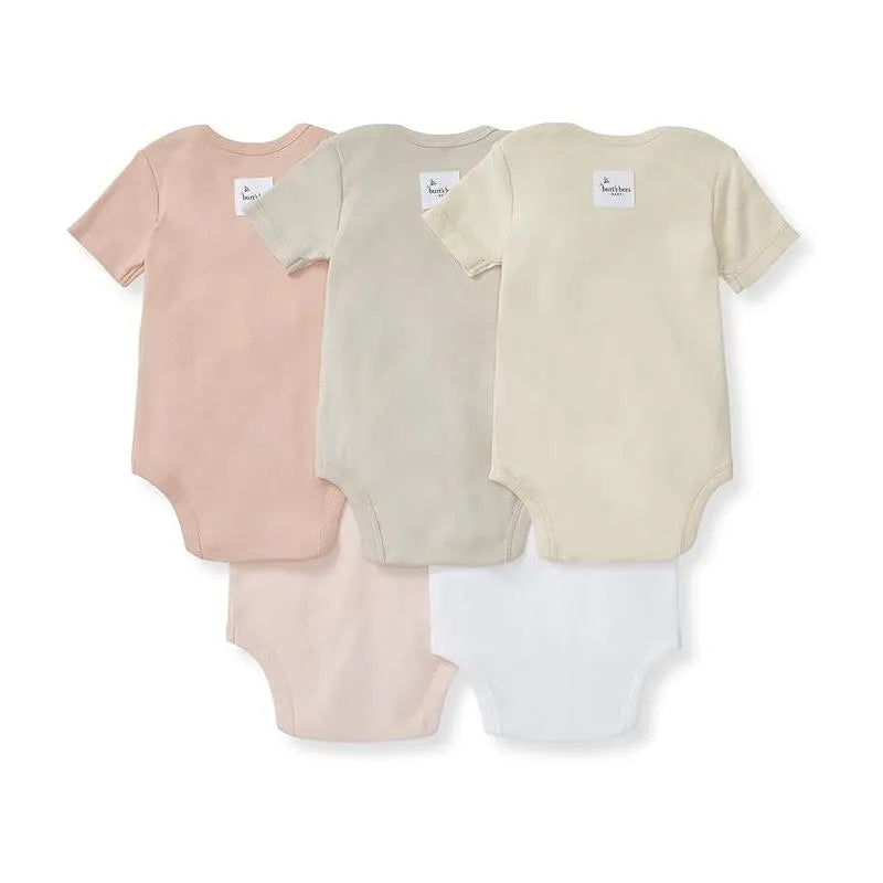 Burts Bees - 5Pk Baby Girl Solid Short Sleeve Bodysuits, Pink Sand