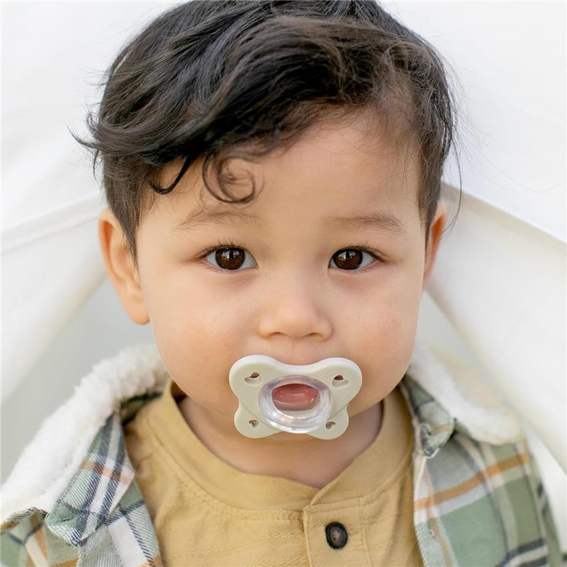 Created from 100% soft silicone, the Dual Soft pacifier is a symphony of style, comfort, and innovation. Every element, from the chic shield to the supportive nipple, is painstakingly designed to offer layered, soothing comfort in a single piece of silicone design. The advanced bi-injection technology creates an extra-soft, satin-textured finish on the integrated silicone nipple, securing the pacifier in your baby's mouth for an uninterrupted, calming experience.