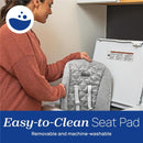 The baby seat is adorned with a lush, quilted fabric made of organic cotton that can be easily cleaned in a washing machine. It's as soft as a cloud, providing your precious bundle with the utmost comfort.