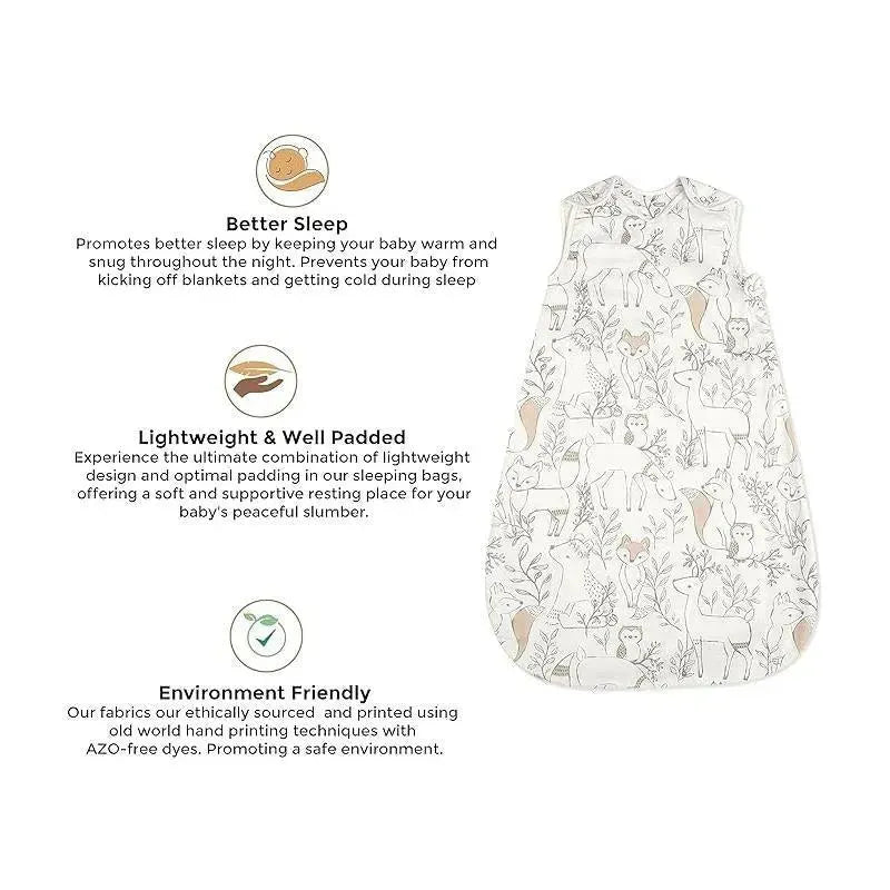 Woodland animals are a favorite amongst parents decorating their baby’s nurseries. This Ezra Woodland Animals cotton Wearable Blanket will pair perfectly with that theme. With an adjustable underarm snap so the blanket can grow with your baby, and a YKK zippers that zip side to bottom for easy diaper changes, this blanket will make for a much more comfortable and hassle free bedtime for both you and your baby. The Ezra print is also available in matching items such as baby nursery bedding, swaddle blankets, and more. Get them all for a curated look.