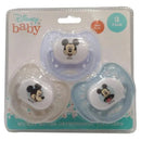 3-Pack pacifier set featuring Disney's Mickey Mouse. Disney 3-pack Mickey Mouse pacifier set Prints / designs as shown BPA free Made in China