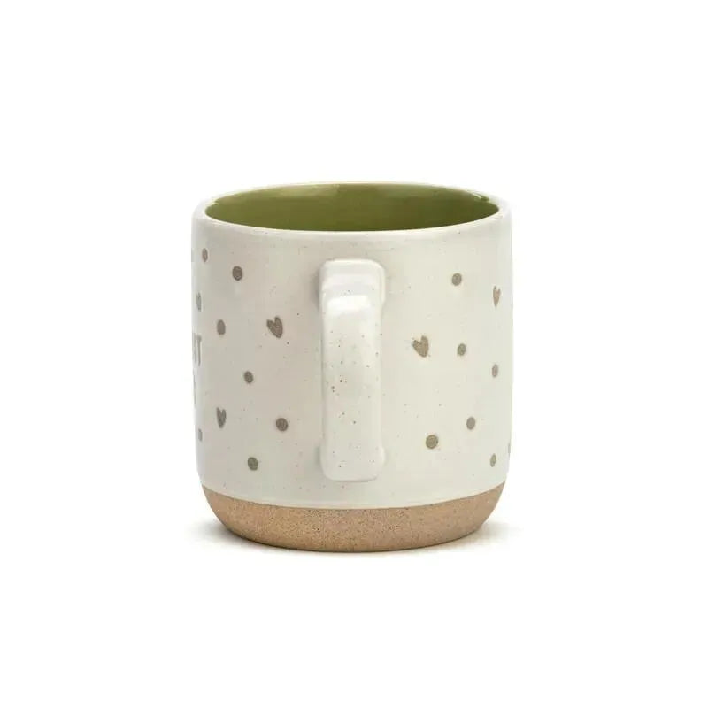 Created in a tan finish with a soft pink interior; Decorated with adorable hearts and dots; Features the tender sentiment "The Very Best Aunt"; Ideal for morning coffee or relaxing with an evening tea
