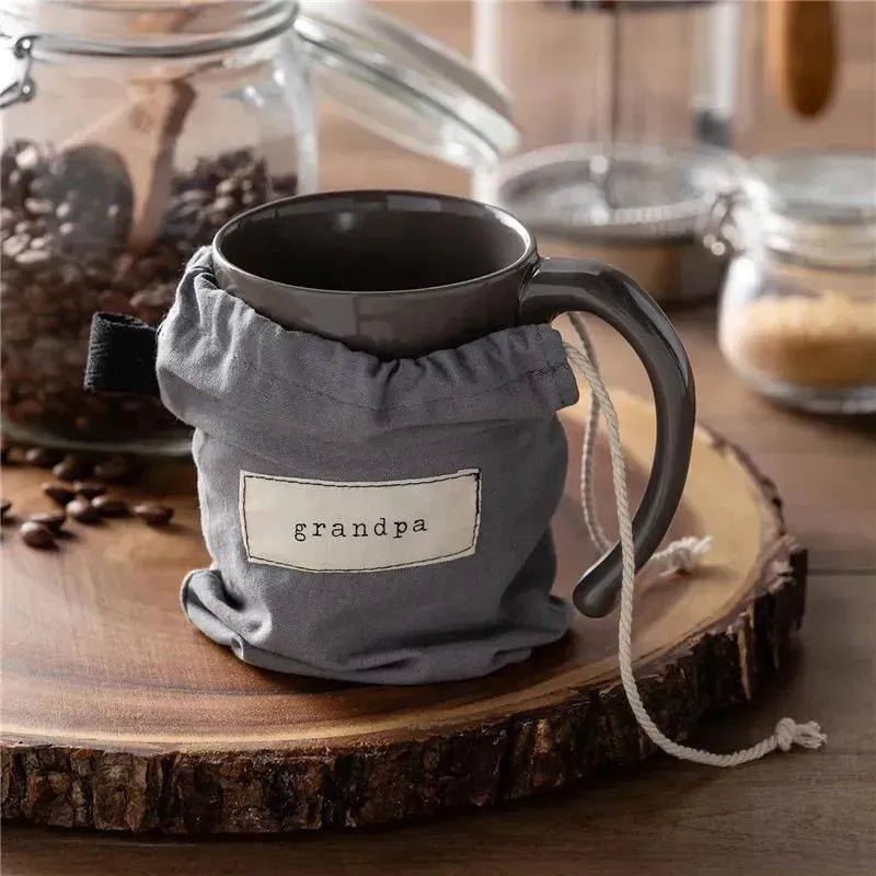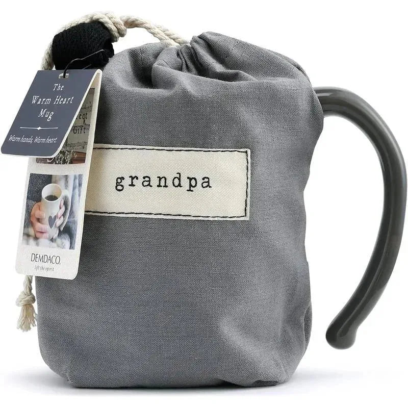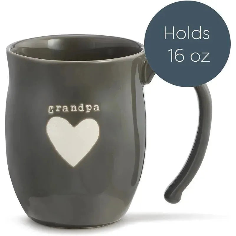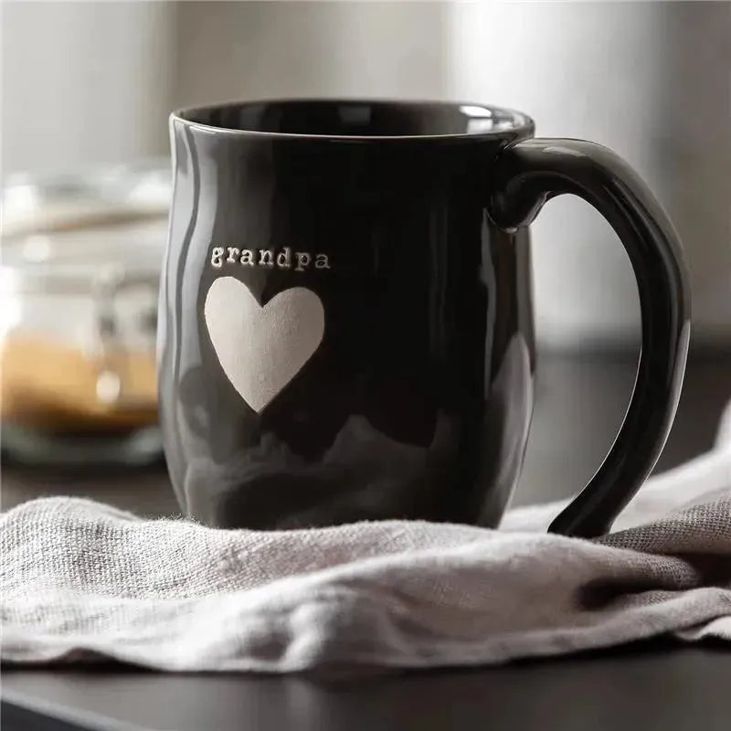 Inspirational mug features sentiment "grandpa" with white heart below; Shows appreciation for the joys and love in life the special relationships in our lives bring us