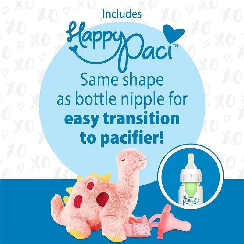 THE PACIFIER BABIES LOVE. Included Dr. Brown’s HappyPaci pacifier is 100% silicone with a contoured shield.