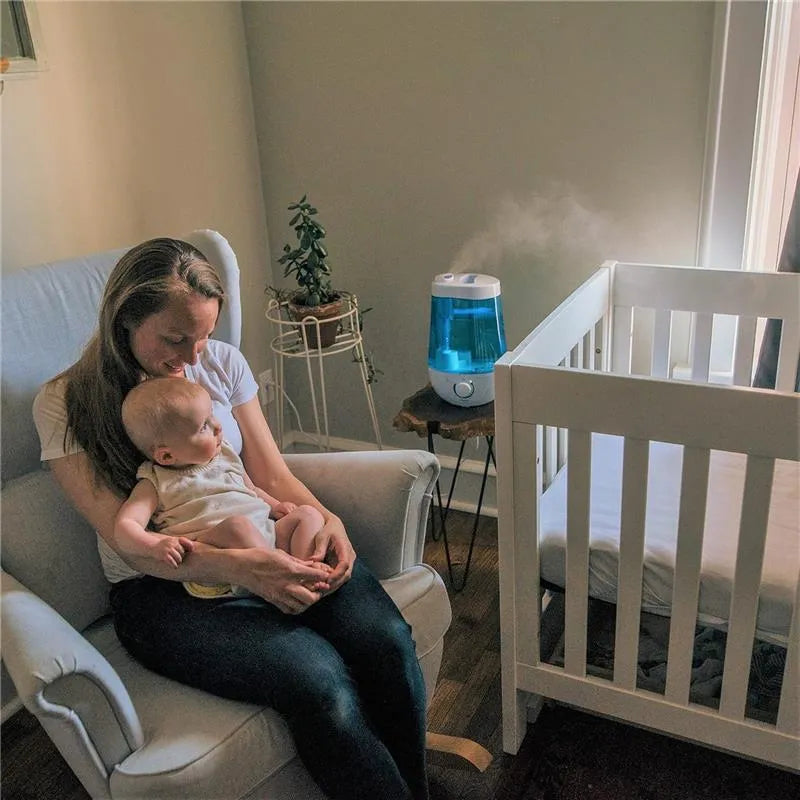 With a hearty 1 gallon (3.8 litre) tank, the humidifier has the stamina to support your baby's needs for up to an impressive 30 hours. The leak-free valve ensures your tranquility will not be disturbed by unnecessary mess or extra cleanup.
