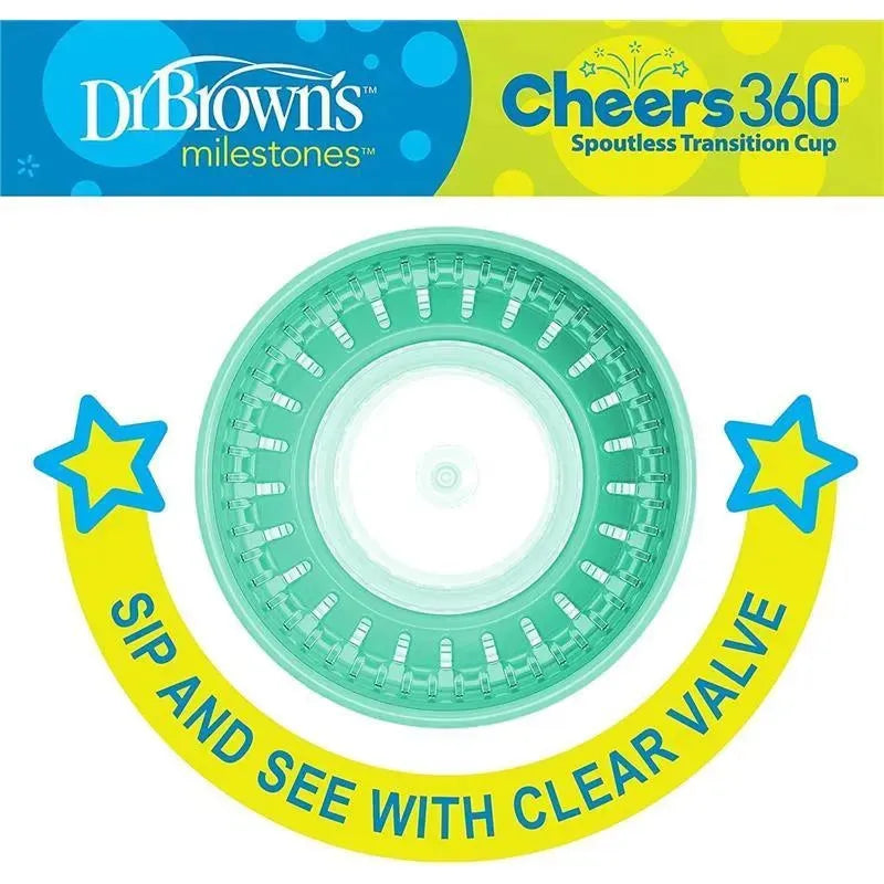 TRANSITION SIPPY CUP FOR BABIES AND TODDLERS. Teach baby big kid cup skills with Dr. Brown’s Milestones Cheers360 Spoutless Transition Cup.