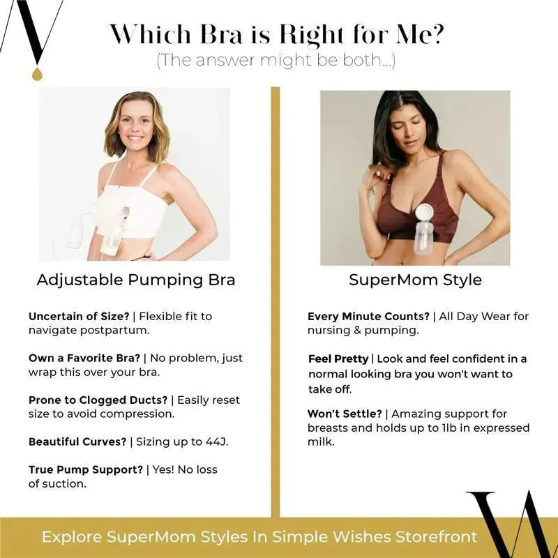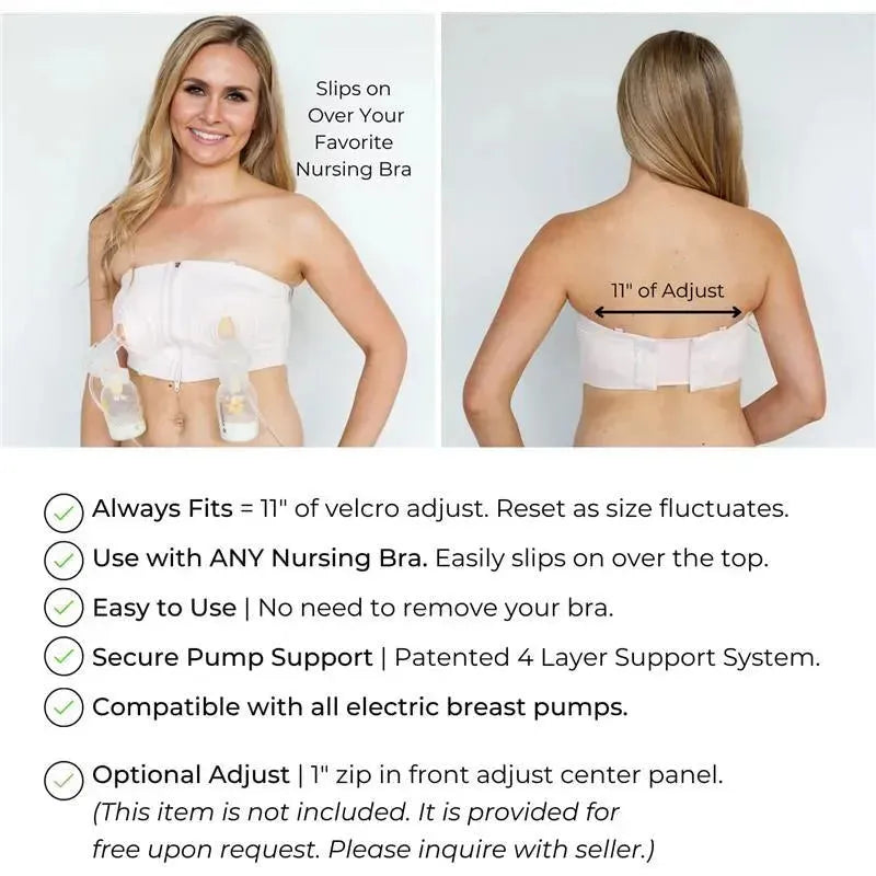 FULLY ADJUSTABLE PUMPING BRA: Comes with a convenient 11" adjustable Velcro back panel to ensure a perfect fit as your body goes through natural postpartum changes during pumping and nursing.