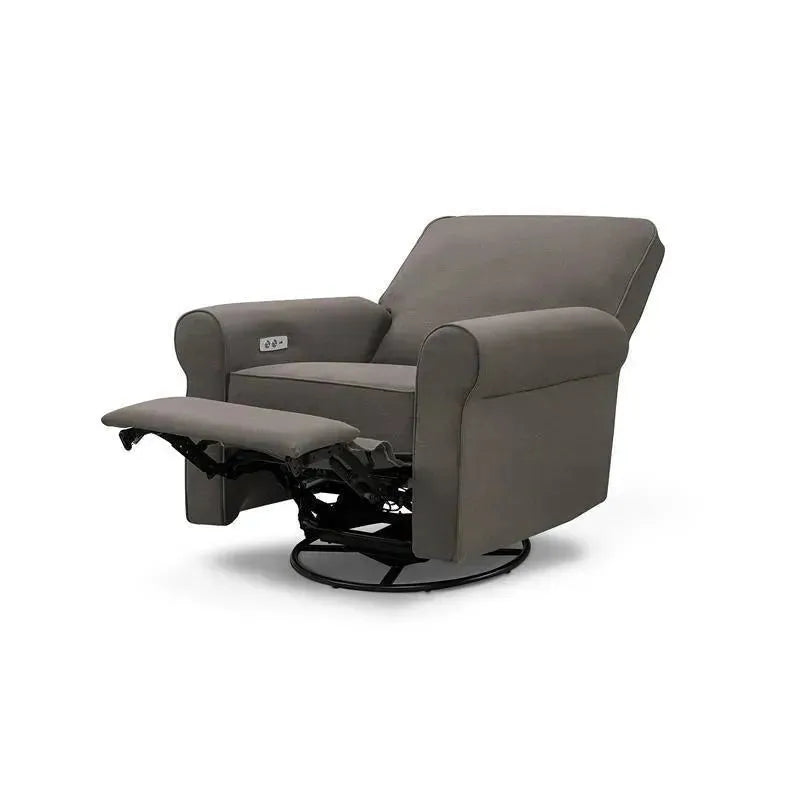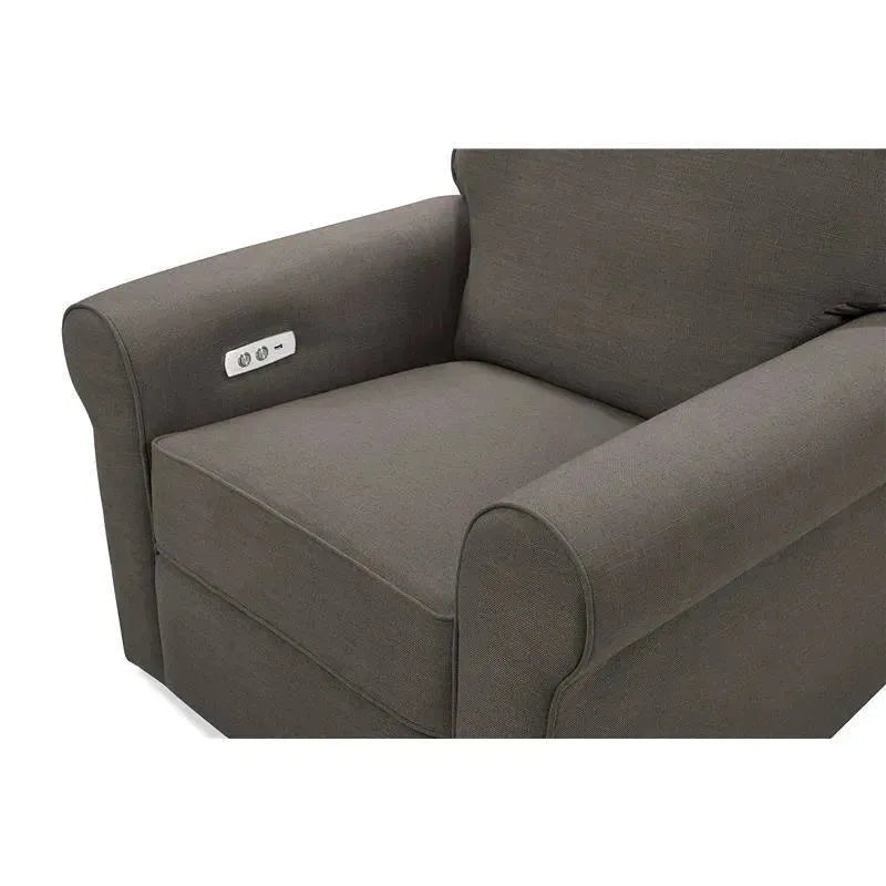 The Monroe Pillowback Power Recliner introduces traditional style with all the comforts of modern technology. With plush arm rests and a soft pillowback, it provides a restful retreat through day and night. With the Monroe's electronic reclining mechanism, built-in USB port, and gentle swivel and gliding motions, you and your baby can relax with comfort and ease.