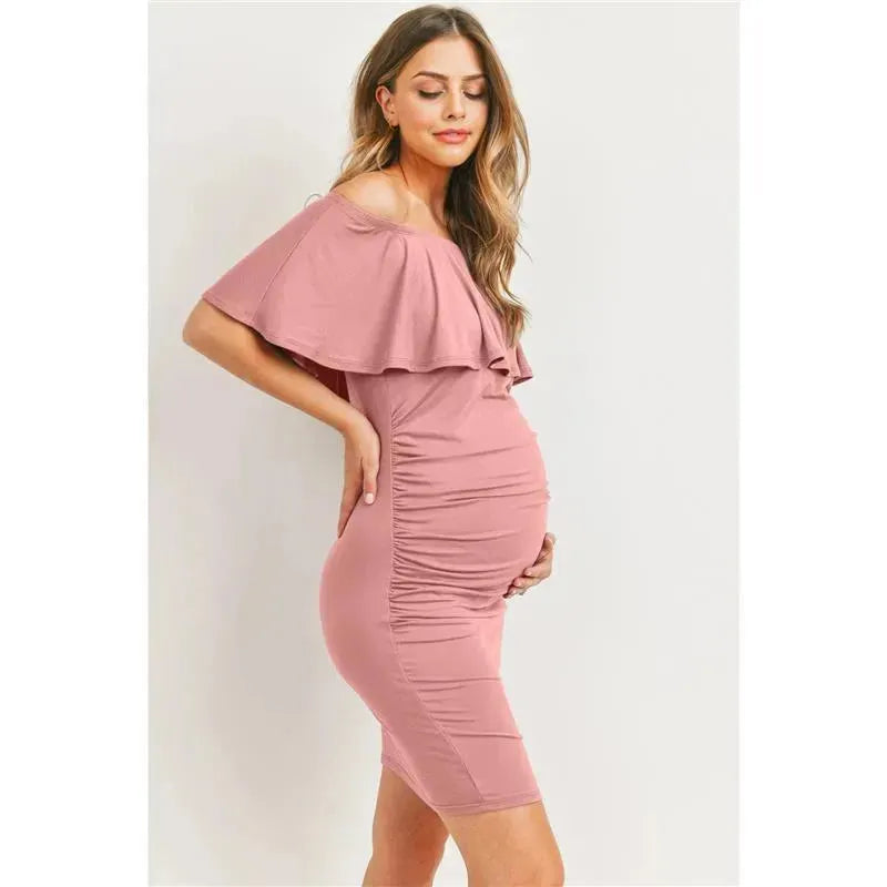 Off Shoulder Ruffled Maternity Mini Dress