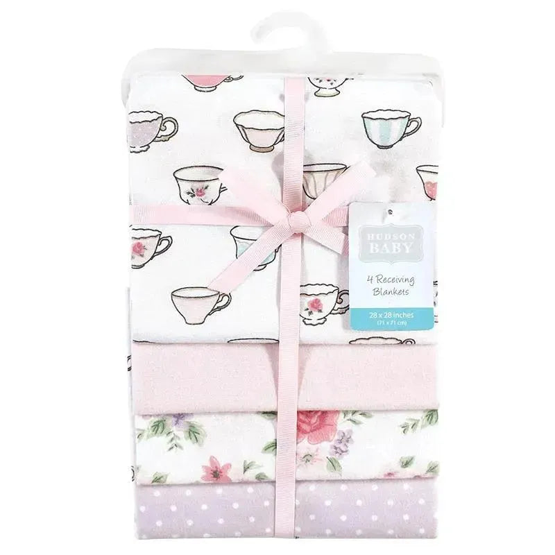 Hudson Baby - Tea Party Unisex Baby Cotton Flannel Receiving Blankets
