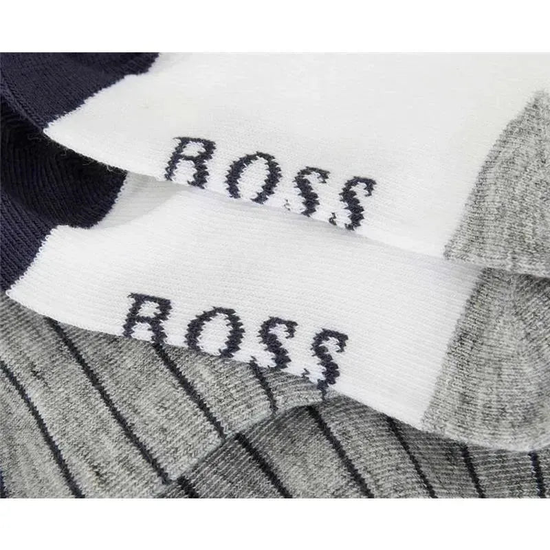 2 pairs of socks, essential for every baby. They feature ultra soft fabric that is gentle against baby's delicate skin, BOSS logo printed and stripes all over.