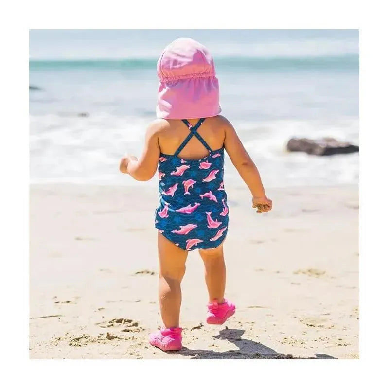 SECURE, LIGHTWEIGHT, AND COMFORTABLE SWIM DIAPER ENCOURAGES SWIMMING—Baby will move freely during swim lessons without feeling weighed down. No bulky fabric and extra snaps, our 2-in-1 baby girl swimsuit and built-in swim diaper is all you need for playtime at the pool or beach.