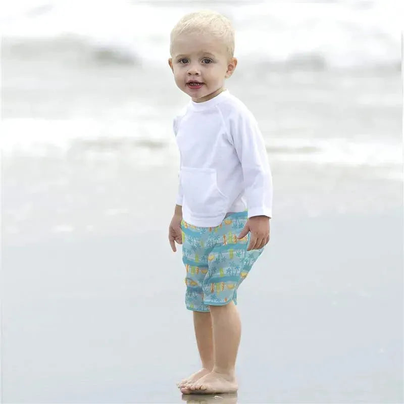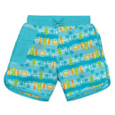Iplay Pocket Board Shorts W/Built-In Swim Diaper - Aqua Surfboard Sunset