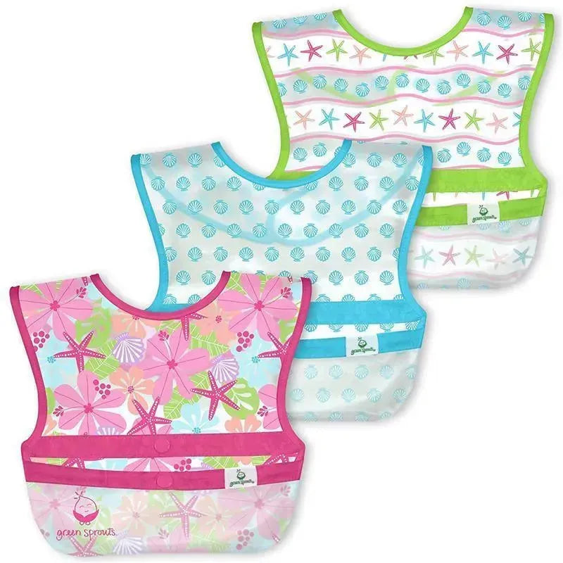 Iplay - Snap & Go Wipe-Off Bibs (3Pk), Pink Shell Floral, 9-18 Months