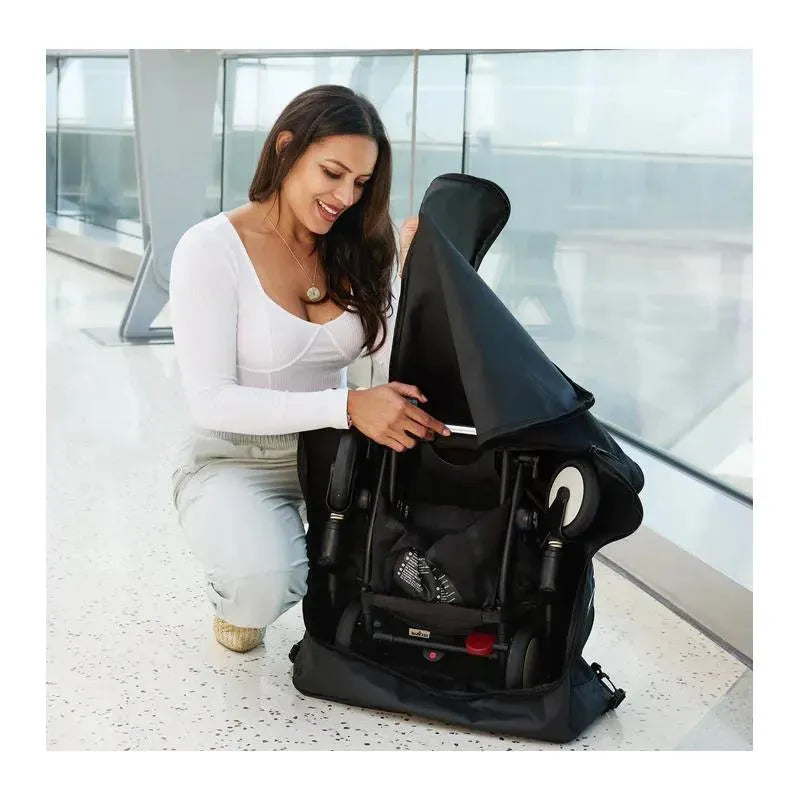 The J.L. Childress Padded Compact Stroller Travel Bag properly protects a compact-fold stroller with thick padding and durable, premium materials and craftsmanship.