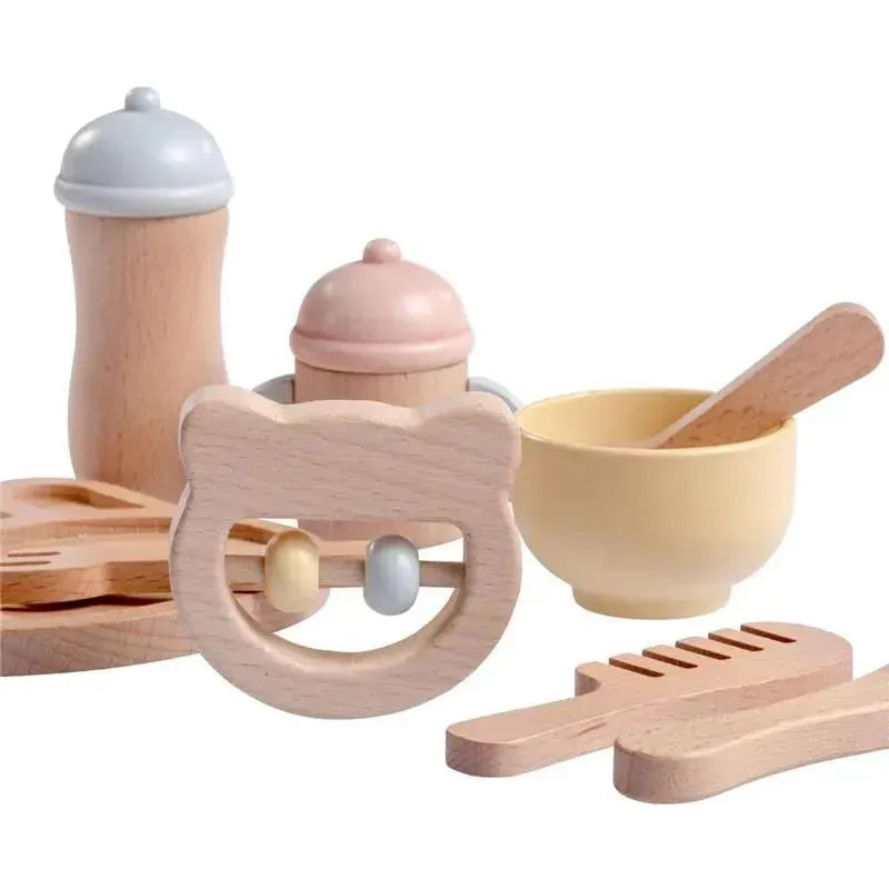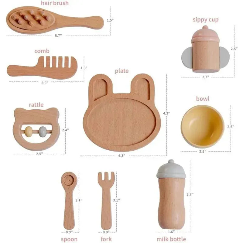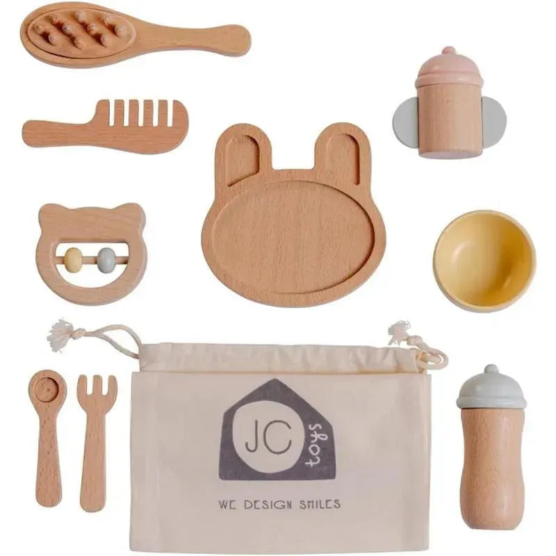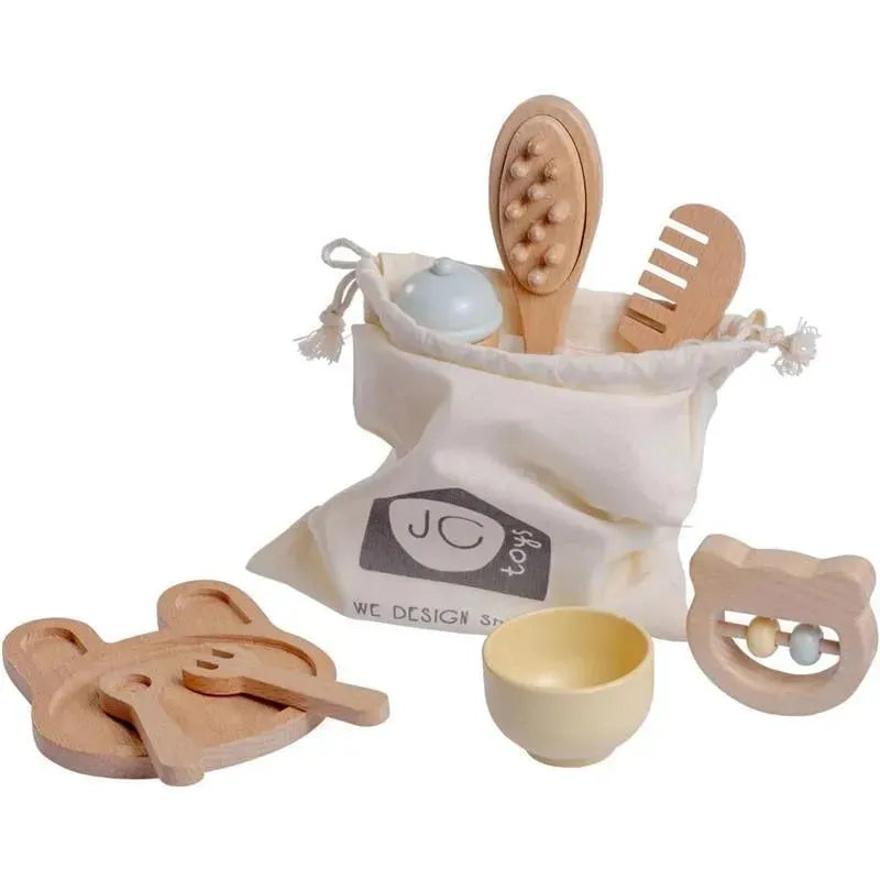 JC Toys - Real Wood 10 Piece Baby's First Care Set, Parfait Collection Twiggly Toys
