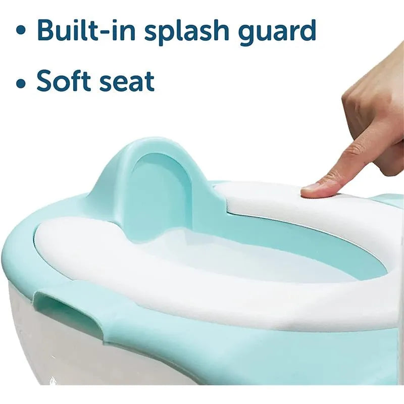 This real-feel potty imitates a real flushing sound and cheers for your kiddo too! The cushioned seat and choice of colors make this seat inviting for both boys and girls, and the built-in splash guard ensures cleanliness.