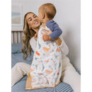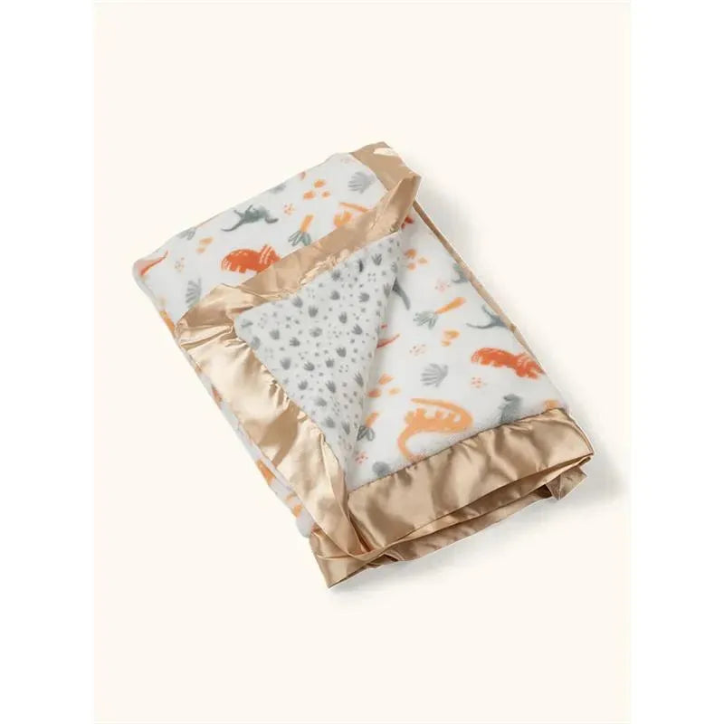 With ultra-soft, thick fabric and a silky satin trim, the double-layered Reversible Baby Blanket from JuJuBe × Studio Oh! is a plush addition to any nursery.