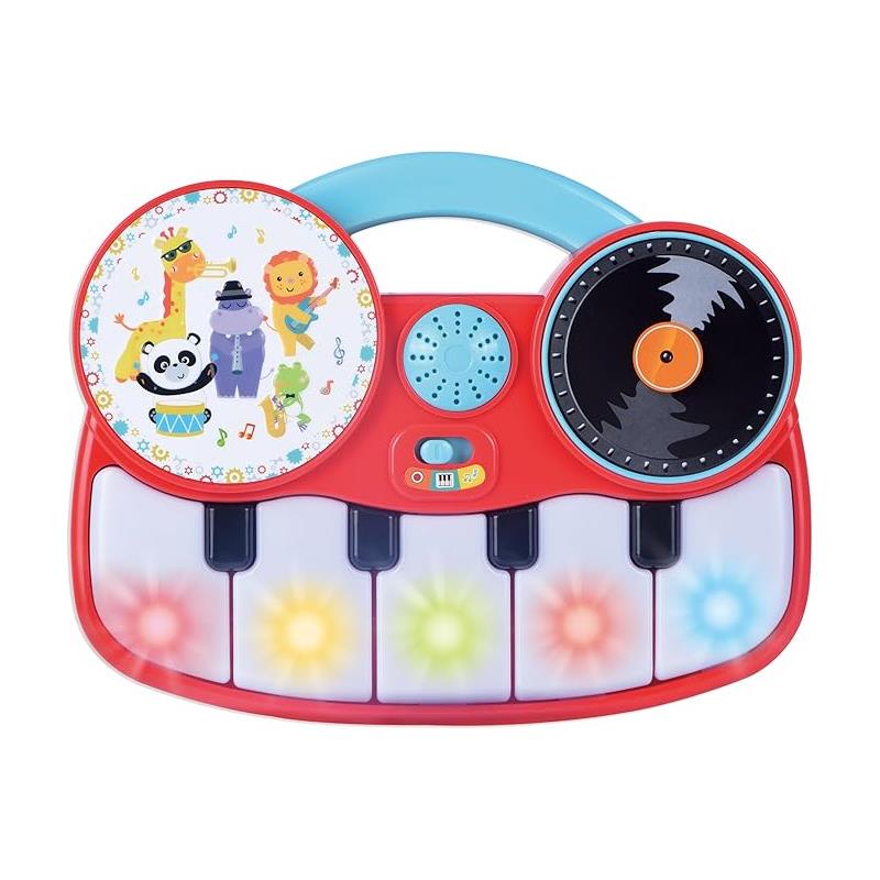 The My First DJ Piano set includes one main unit, crafted and curated for children aged six months and older. The package comes ready with 3 "AA" batteries, so your child can start their musical journey right away. Step into a world of music, creativity, and fun with the My First DJ Piano!