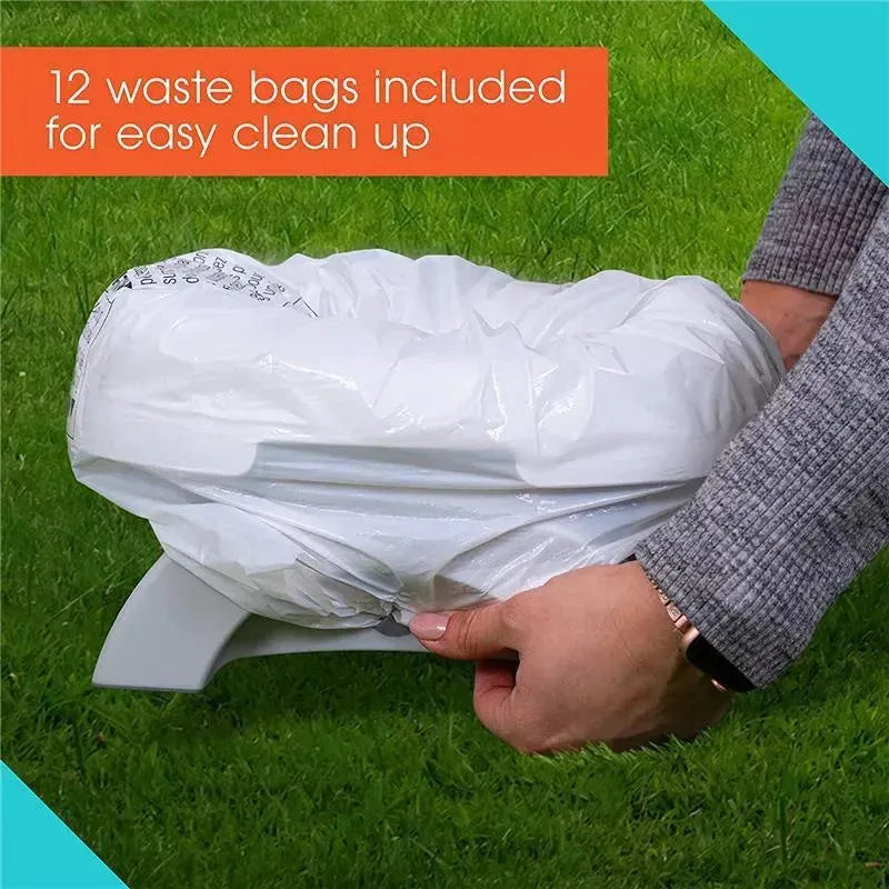Lightweight and compact, My Travel Potty Deluxe from Summer is the perfect on-the-go solution. This potty has two modes of use, so your toddler can go to the bathroom with confidence, anywhere! In standalone potty mode, the legs extend down in seconds and lock securely. Soft, flexible tabs hold disposable potty liners in place, making cleanup a breeze – just dispose of the bag and wipe the bowl clean. Extend the legs outward and this travel potty seat for toddlers fits on standard-size adult toilets as a potty ring, for use at home or in public restrooms. Integrated handles add stability when used as a potty ring. My Travel Potty Deluxe includes a supply of 12 disposable liners. Each leak-proof disposable potty bag holds up to 150 ml of liquid. The potty comes with its own storage pouch so you can keep it in your car or diaper bag, or under the stroller. That way, it’s always there when your little one suddenly needs it!