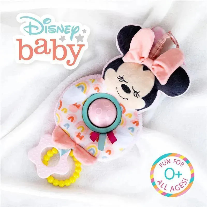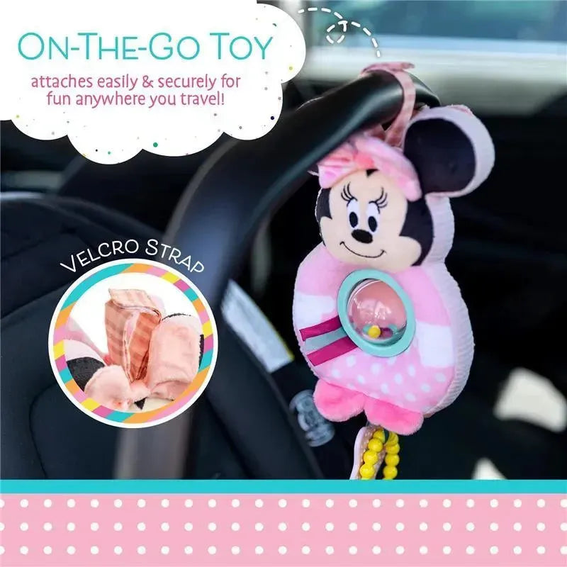Keep baby happy & soothed with this adorable toy featuring soft texture, on-the-go velcro strap, spinner ball rattle, ribbons, teether rings, crinkle, & double-sided design. Minnie Mouse is an instantly recognizable friend, bringing sweet memories from your own childhood as it helps your child to learn, play, and grow.