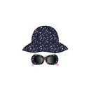 Little Me - 2Pc Girl Hat & Sunglass Set Blue With Rainbow Hearts, 0/12M