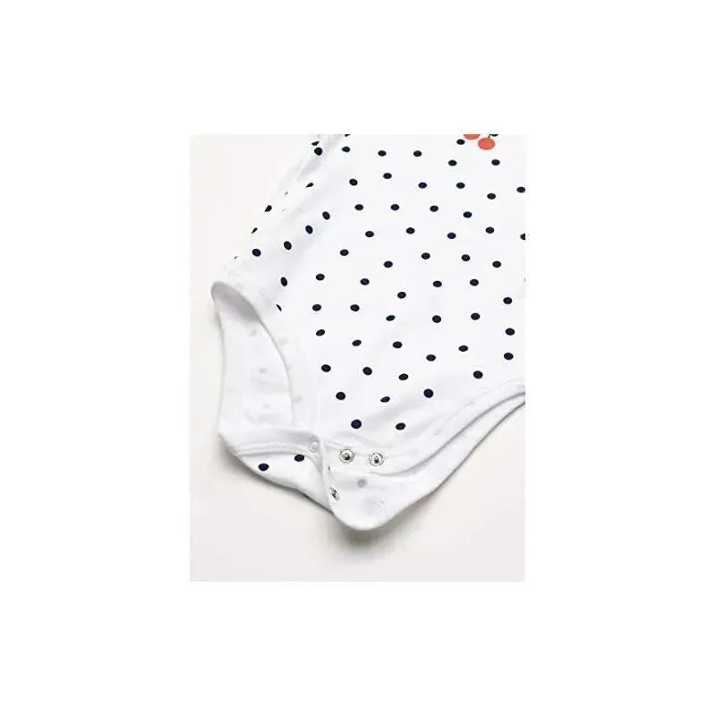 Cherry 3 Pack Pant Set, bodysuit all printed with cherry embroidered in the center, snap closure for easy changes, short sleeves, striped pants, elasticize waist and includes striped bandana with cherry embroidered in the center.